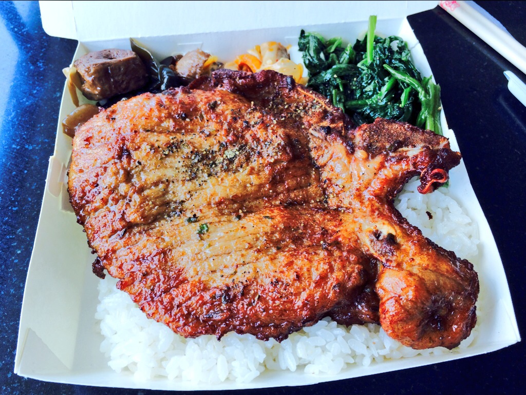 サウナから徒歩5分!絶品「排骨飯」のお店です。なんと、このボリュームで70元!たった、280円です。注文方法は、レジで会計を済ませて、付け合わせのお惣菜を3つ選択、そして、ご飯の上にスペアリブがドーンとのせられます。見た目はお弁当ですが、2・3階での店内飲食が可能です。